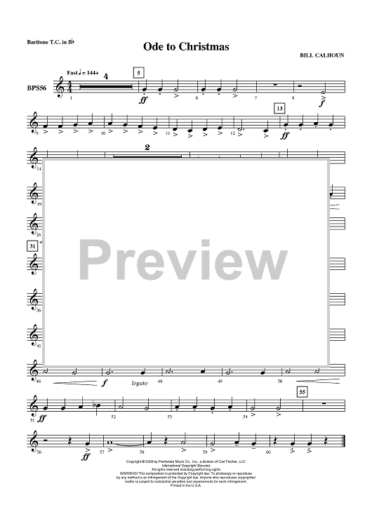 "Ode to Christmas - Baritone (Treble Clef)" Sheet Music by Bill Calhoun