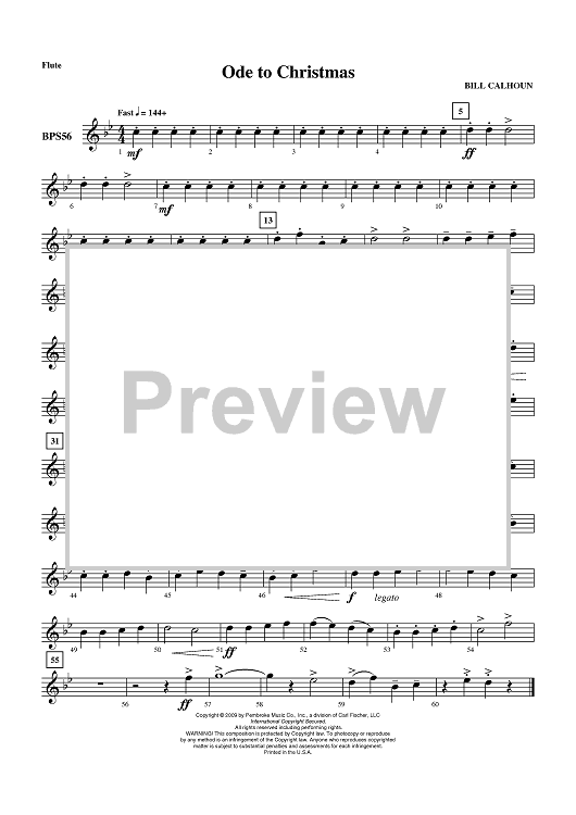 "Ode to Christmas - Flute" Sheet Music by Bill Calhoun