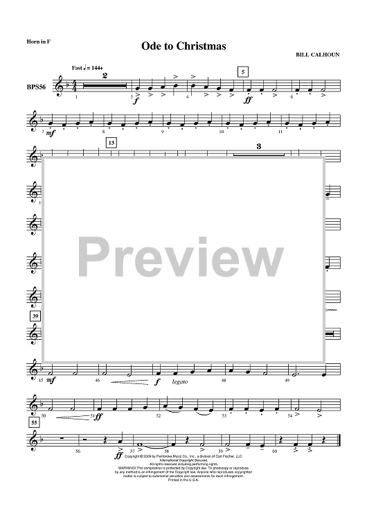 "Ode to Christmas - Horn in F" Sheet Music by Bill Calhoun