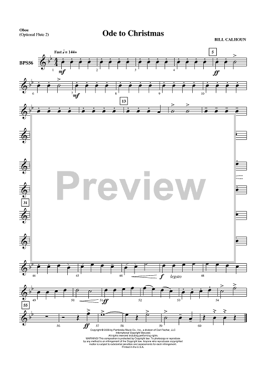 "Ode to Christmas - Oboe" Sheet Music by Bill Calhoun
