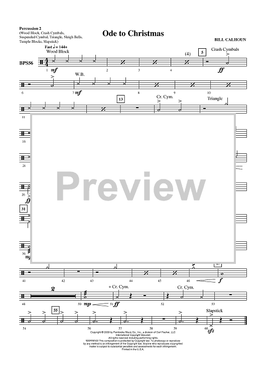 "Ode to Christmas - Percussion 2" Sheet Music by Bill Calhoun