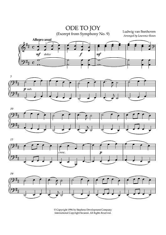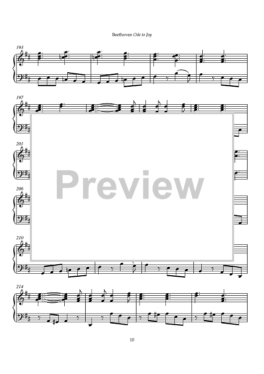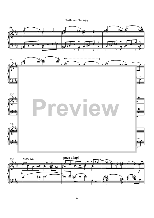 Digital Sheet Music for Ode to Joy by Ludwig van Beethoven scored for Piano; id:369982