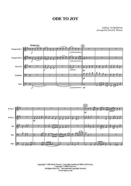 Digital Sheet Music for Ode to Joy - Score by Ludwig van Beethoven, David R. Thomas scored for Brass Quintet; id:404820