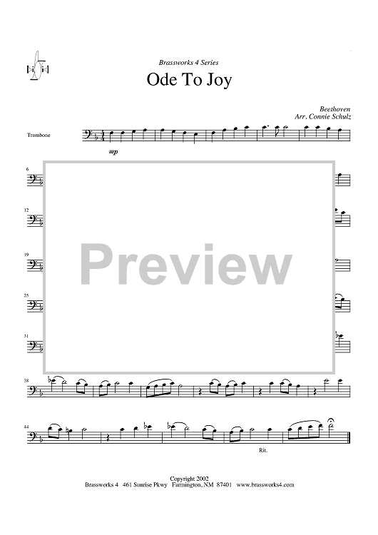 Digital Sheet Music for Ode to Joy - Trombone by Ludwig van Beethoven, Connie Schulz scored for Brass Quartet; id:316734