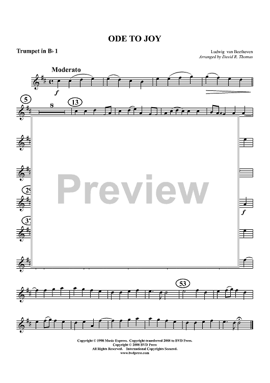 Digital Sheet Music for Ode to Joy - Trumpet 1 by Ludwig van Beethoven, David R. Thomas scored for Brass Quintet; id:404821