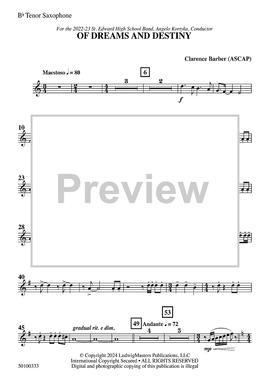Digital Sheet Music for Of Dreams and Destiny - Bb Tenor Sax by Clarence Barber scored for Concert Band; id:503821
