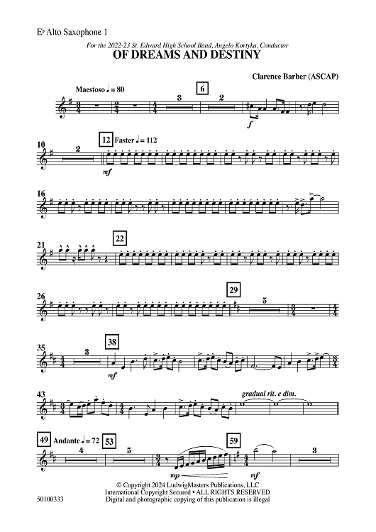 "Of Dreams and Destiny - Eb Alto Sax 1" Sheet Music by Clarence Barber