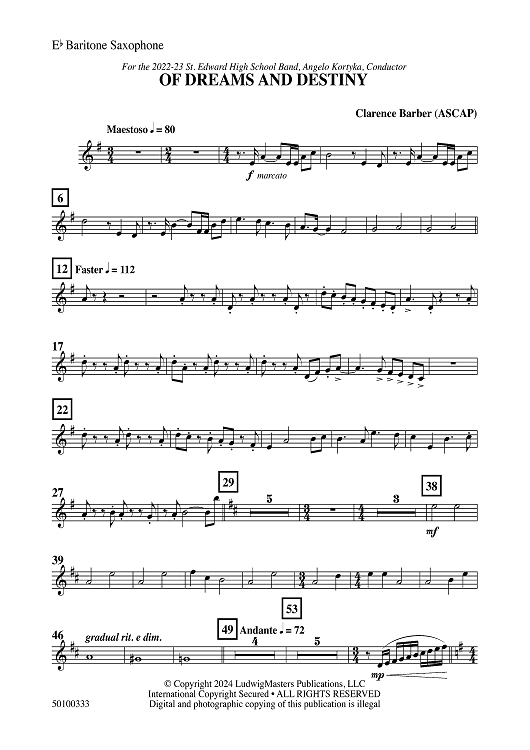 Digital Sheet Music for Of Dreams and Destiny - Eb Baritone Sax by Clarence Barber scored for Concert Band; id:503822
