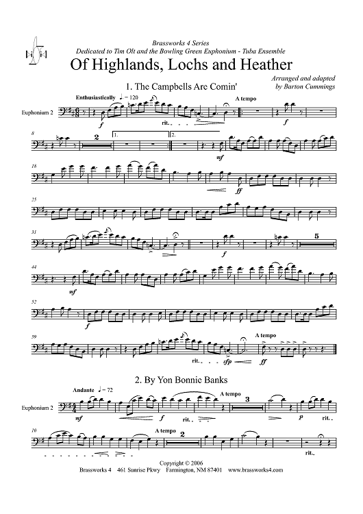 Digital Sheet Music for Of Highlands, Lochs and Heather - Euphonium 2 BC by Traditional, Barton Cummings scored for Tuba/Euphonium Choir; id:319783