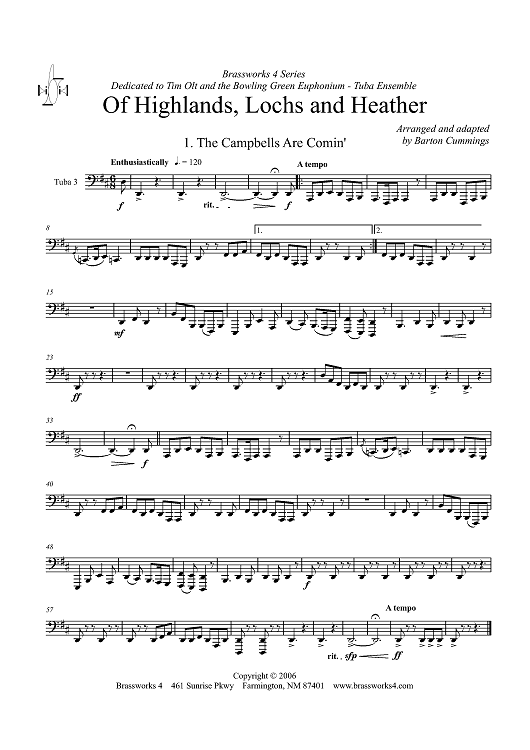 Digital Sheet Music for Of Highlands, Lochs and Heather - Tuba 3 by Traditional, Barton Cummings scored for Tuba/Euphonium Choir; id:319790