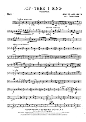 Digital Sheet Music for Of Thee I Sing - Bass by , George Gershwin, Hans Spialek scored for Orchestra; id:423801