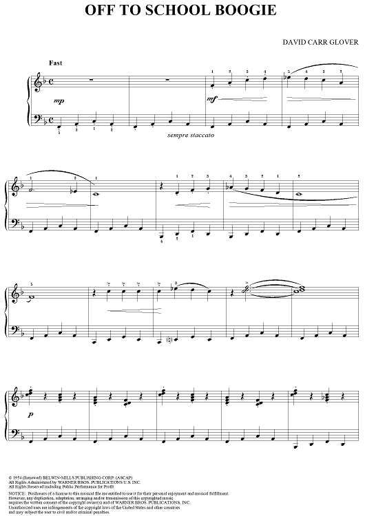 "Off to School Boogie" Sheet Music by David Carr Glover