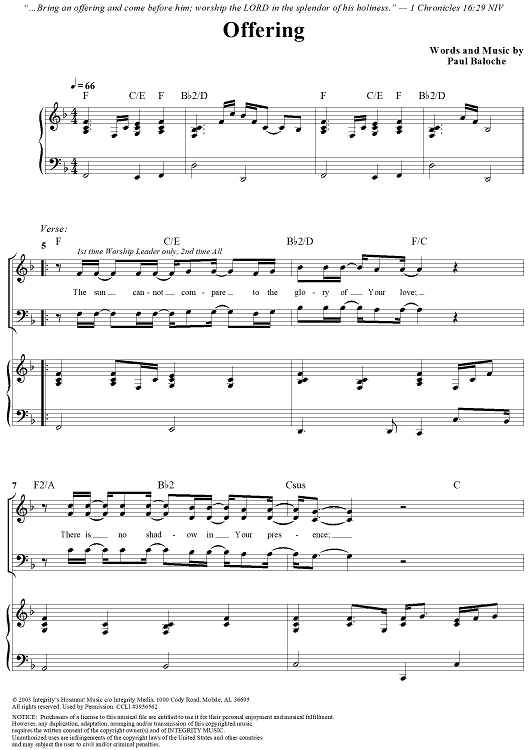Digital Sheet Music for Offering by Paul Baloche scored for Mixed Chorus/Piano; id:308894