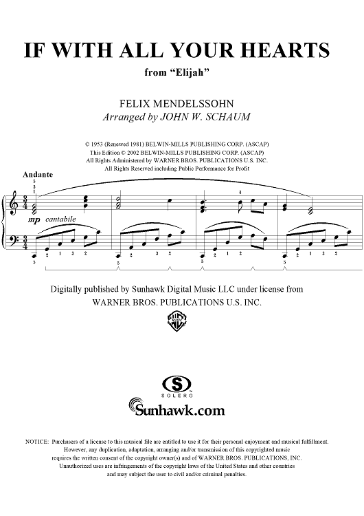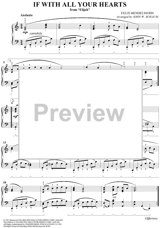 Digital Sheet Music for Offertories: If With All Your Hearts by Felix Mendelssohn, John W. Schaum scored for Piano Solo; id:290157