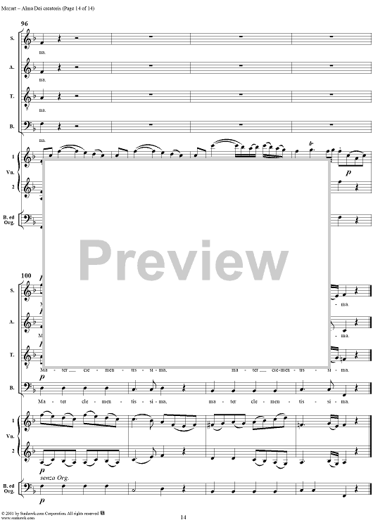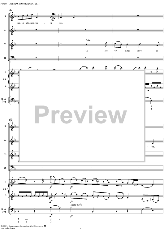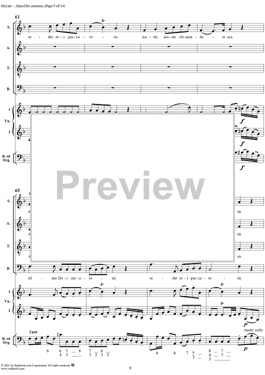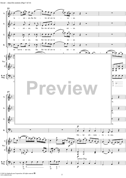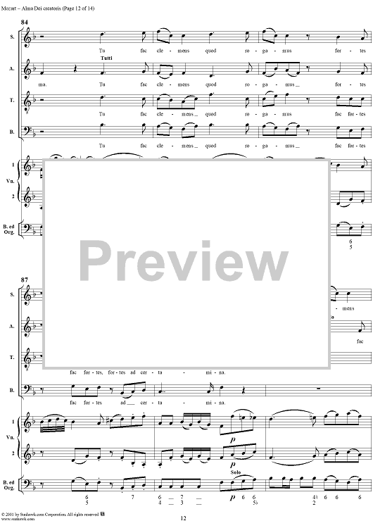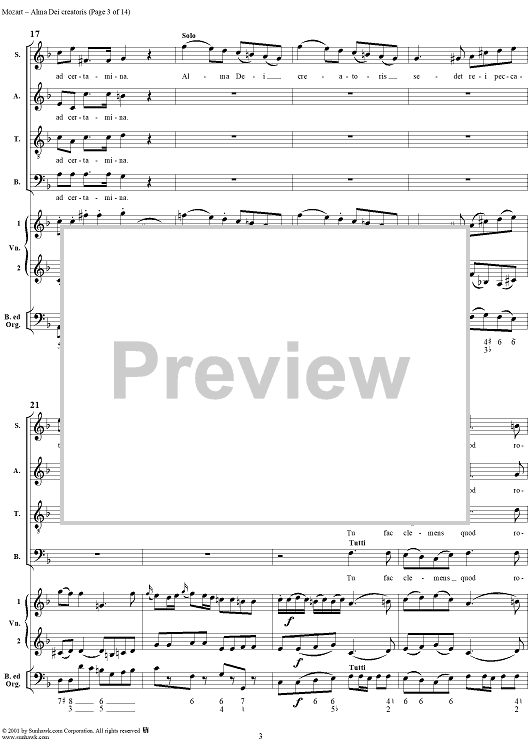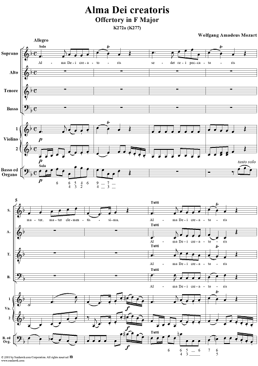 Digital Sheet Music for Offertorium de b.v. Maria "Alma Dei creatorius," K272a (K277) by Wolfgang Amadeus Mozart scored for Four-part Mixed Chorus/Strings/Continuo; id:251730
