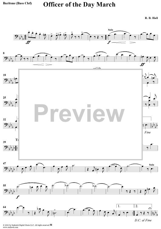 Digital Sheet Music for Officer of the Day March - Baritone BC by R. B. Hall scored for Concert Band; id:282495