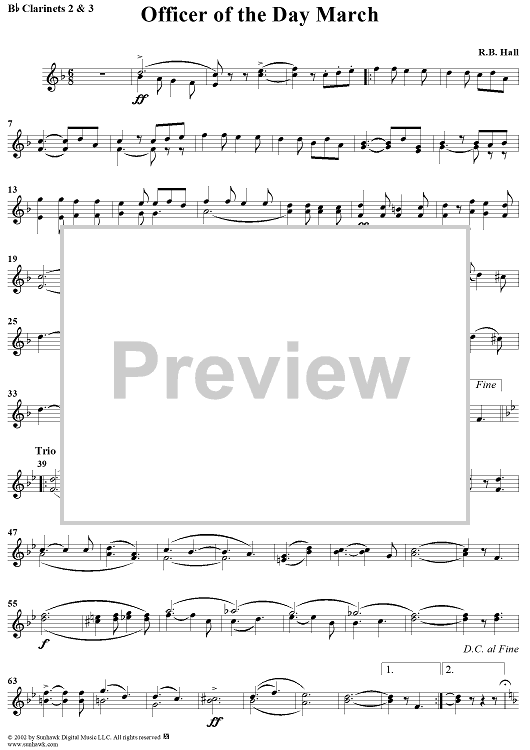 Digital Sheet Music for Officer of the Day March - Clarinets 2 & 3 by R. B. Hall scored for Concert Band; id:282493