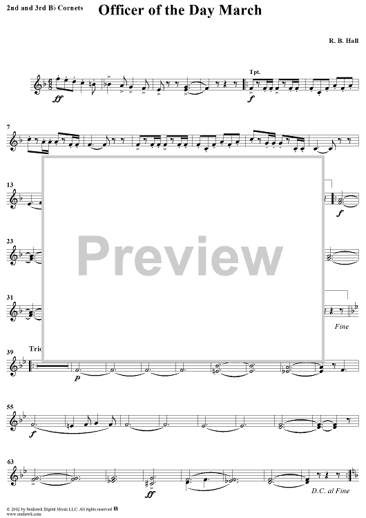 Digital Sheet Music for Officer of the Day March - Cornets 2 & 3 by R. B. Hall scored for Concert Band; id:282507