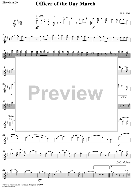"Officer of the Day March - D-flat Piccolo" Sheet Music by R. B. Hall