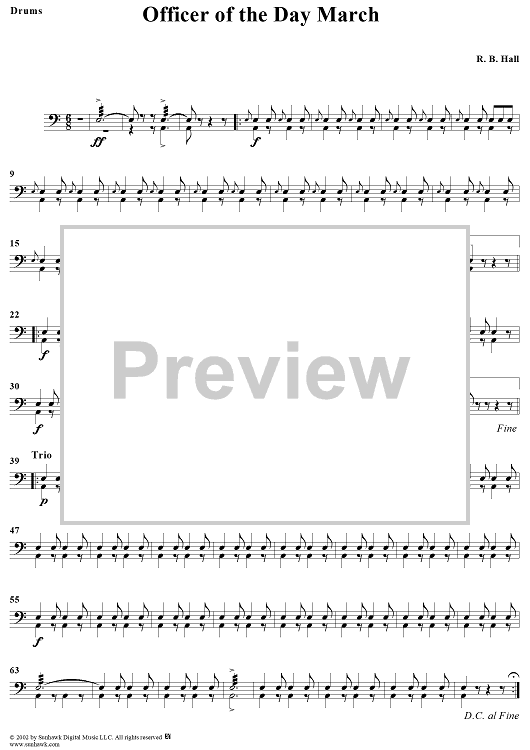 Digital Sheet Music for Officer of the Day March - Drums by R. B. Hall scored for Concert Band; id:282483