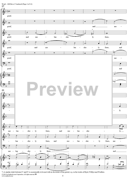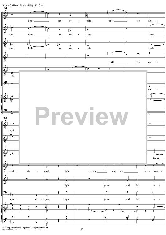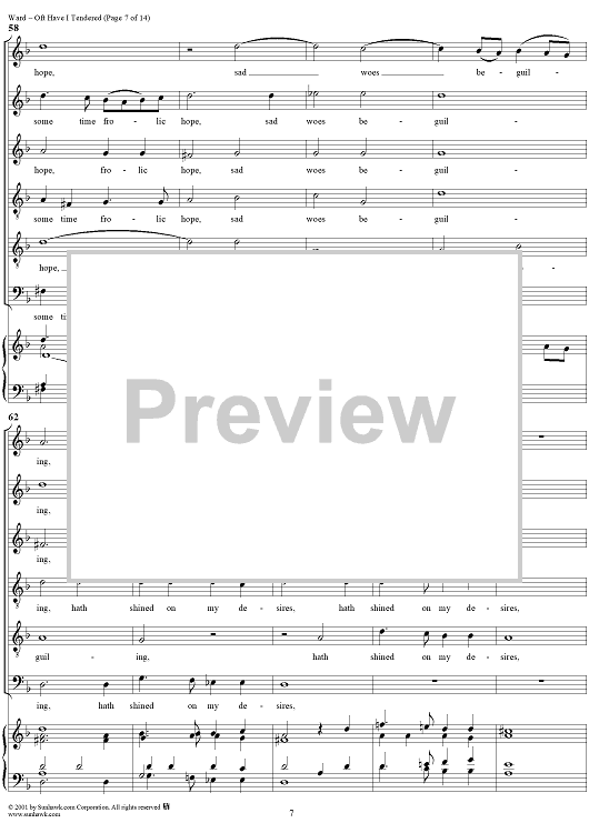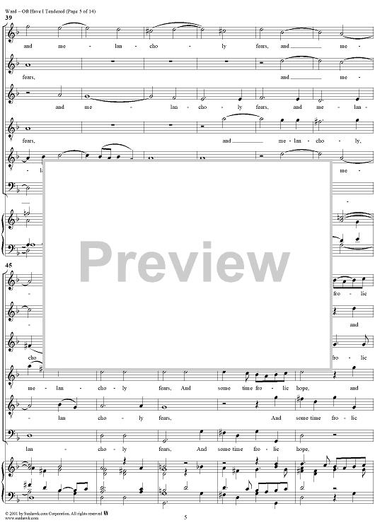 Digital Sheet Music for Oft Have I Tendered by John Ward scored for Mixed Chorus; id:265419