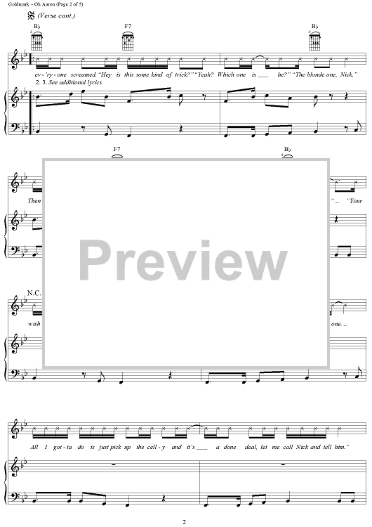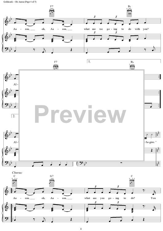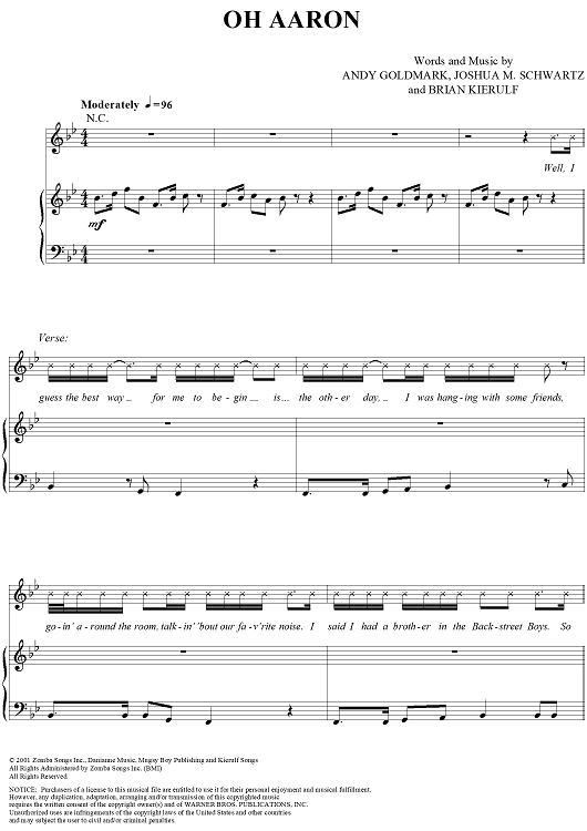 Digital Sheet Music for Oh Aaron by Andy Goldmark, Brian Kierulf, Joshua Schwartz, Aaron Carter scored for Piano/Vocal/Chords; id:284468