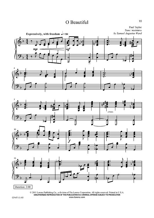Digital Sheet Music for Oh Beautiful / A Thankful Prayer Response by Various, Paul Taylor scored for Piano Solo; id:434068