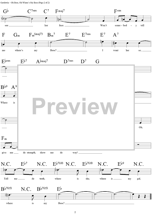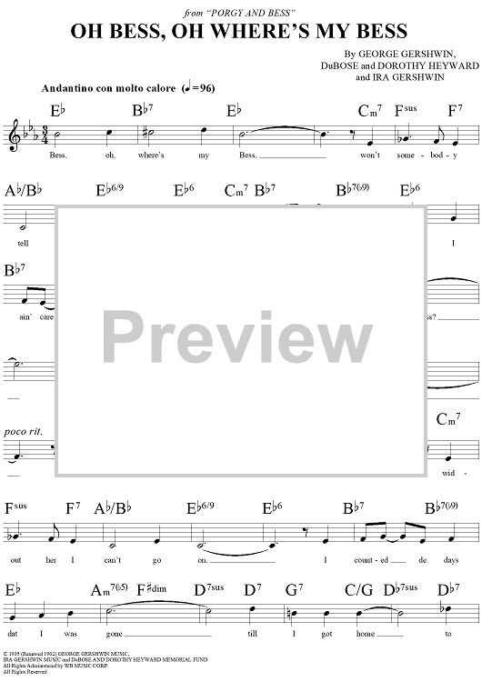 Digital Sheet Music for Oh Bess, Oh Where's My Bess by George Gershwin, Ira Gershwin, Dubose & Dorothy Heyward scored for Lead Sheet; id:283674