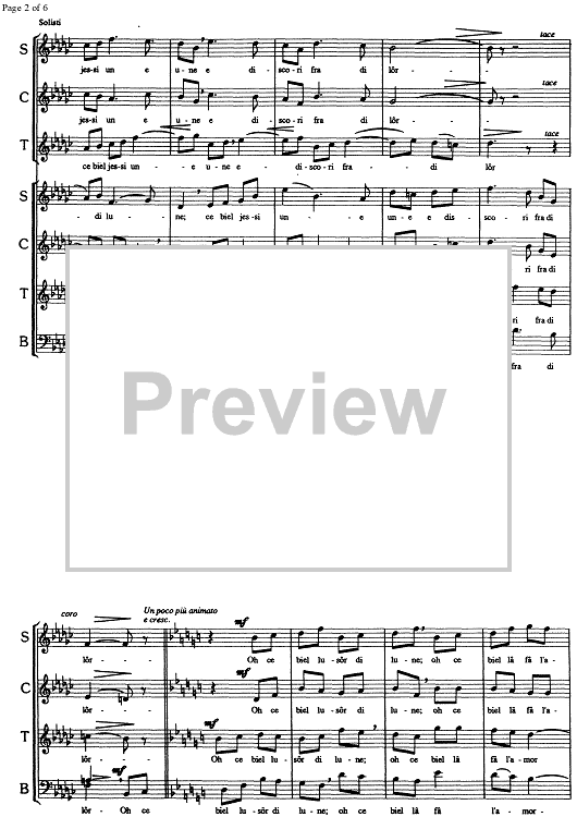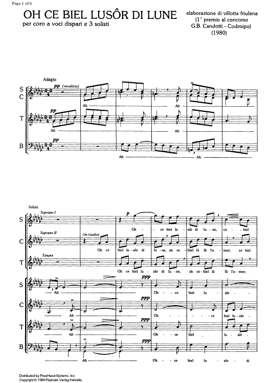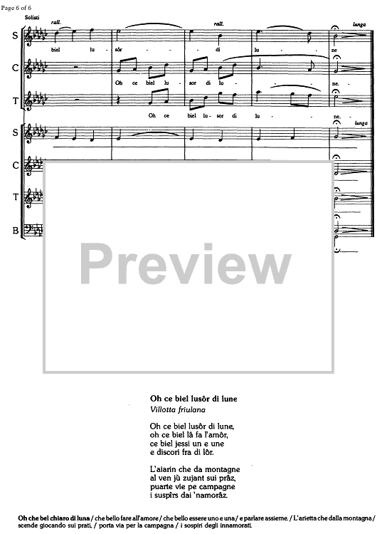 Digital Sheet Music for Oh ce biel lusôr di lune by , Albino Perosa, Traditional scored for SATB Choir; id:331212