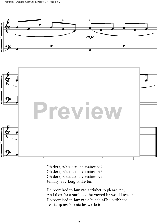 "Oh Dear, What Can The Matter Be?" Sheet Music by Traditional