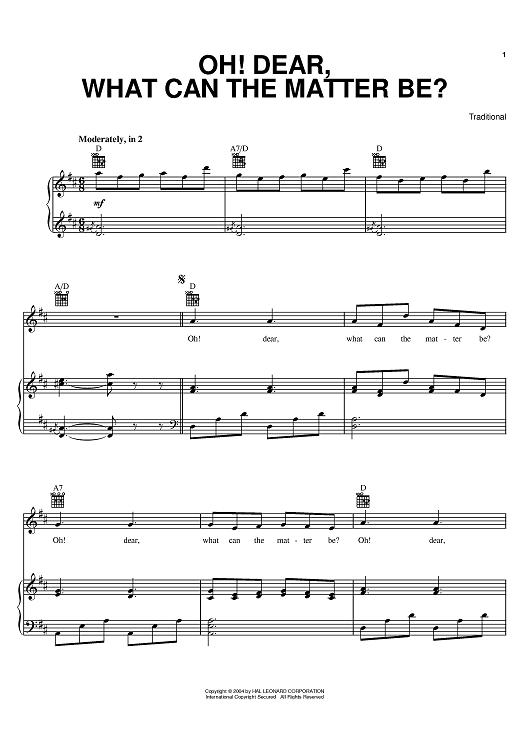 "Oh Dear! What Can The Matter Be?" Sheet Music by
