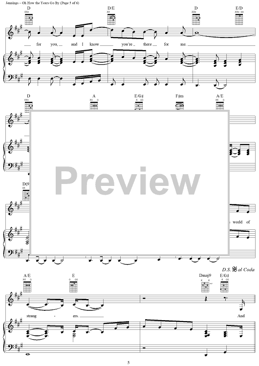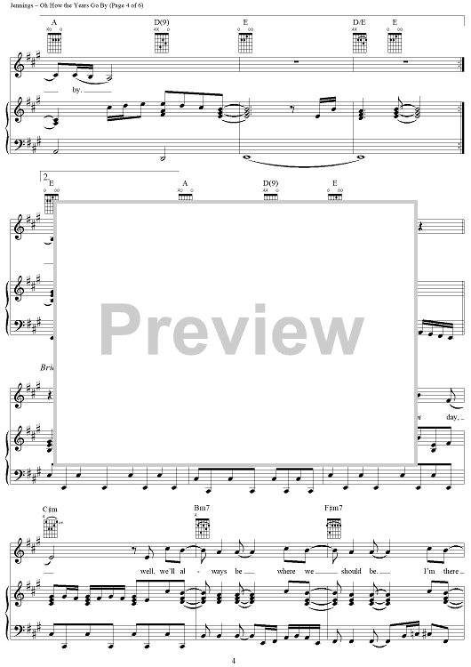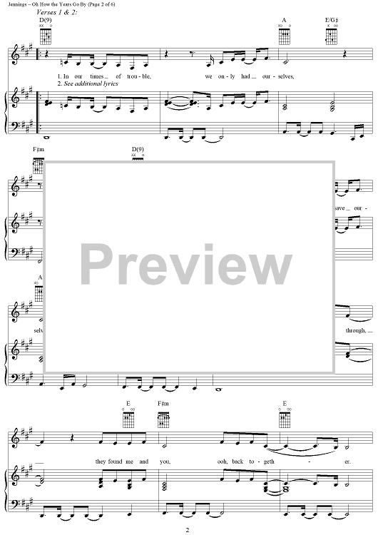 Digital Sheet Music for Oh How the Years Go by by Will Jennings, Simon Climie, Vanessa Williams scored for Piano/Vocal/Chords; id:289284