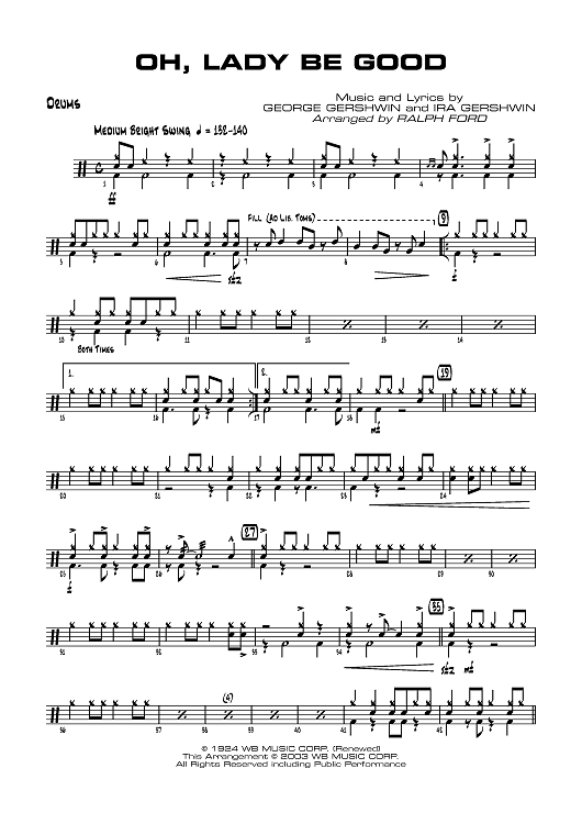 Digital Sheet Music for Oh, Lady Be Good! - Drums by George Gershwin, Ira Gershwin, Ralph Ford scored for Jazz Ensemble; id:358753