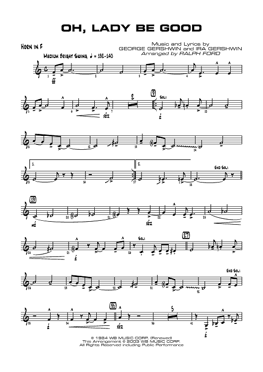 Digital Sheet Music for Oh, Lady Be Good! - Horn in F by George Gershwin, Ira Gershwin, Ralph Ford scored for Jazz Ensemble; id:358746