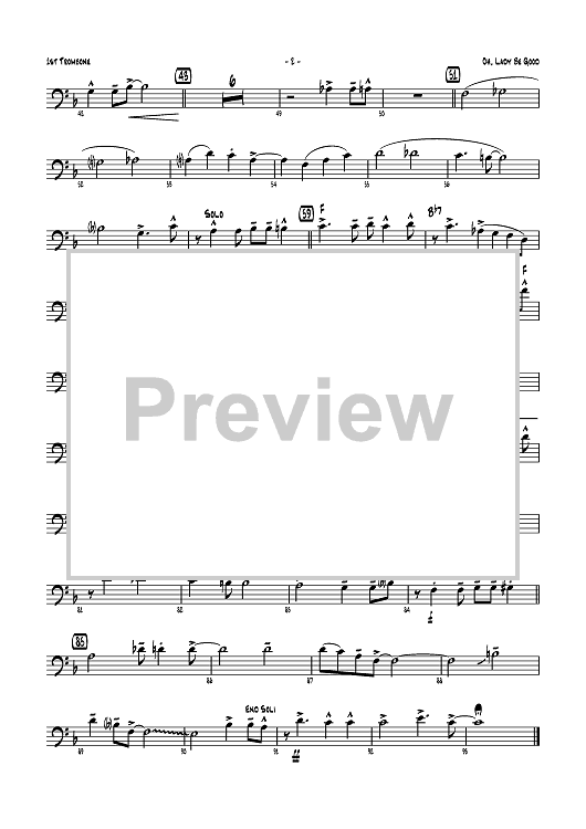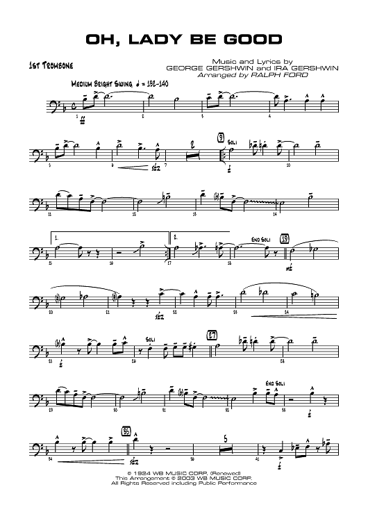 Digital Sheet Music for Oh, Lady Be Good! - Trombone 1 by George Gershwin, Ira Gershwin, Ralph Ford scored for Jazz Ensemble; id:358742