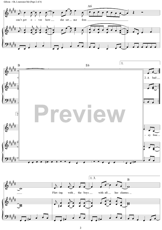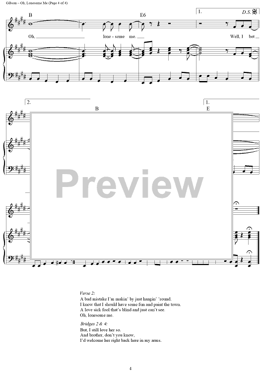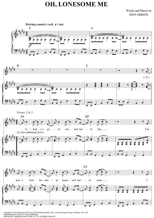 Digital Sheet Music for Oh, Lonesome Me by Don Gibson scored for Piano/Vocal/Chords; id:268038