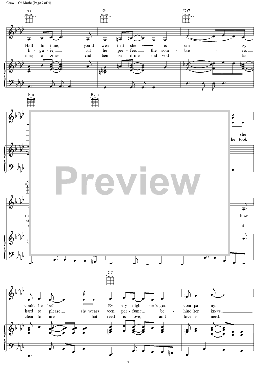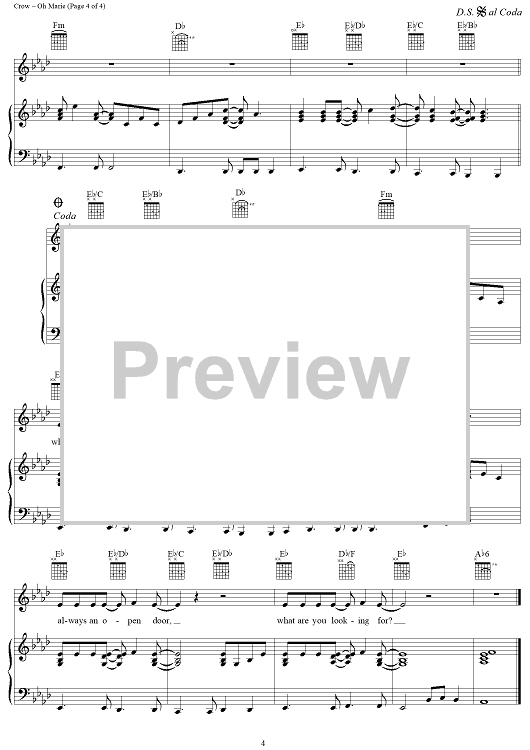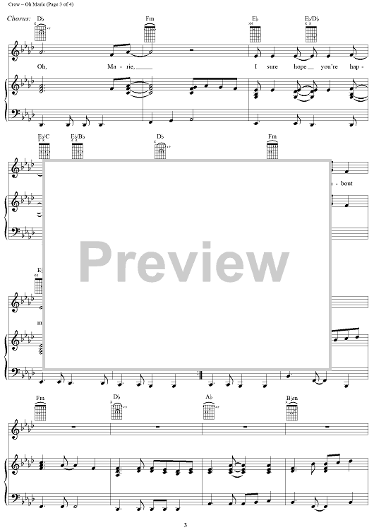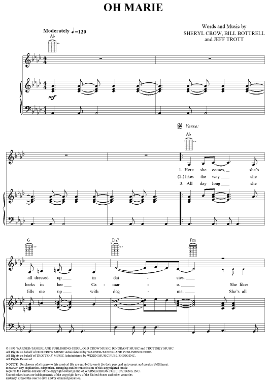 Digital Sheet Music for Oh Marie by Sheryl Crow, Bill Bottrell, Jeff Trott scored for Piano/Vocal/Chords; id:272037
