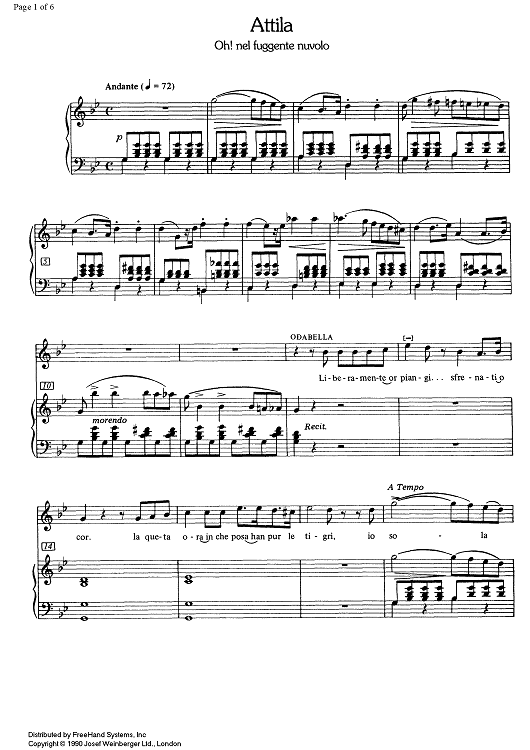 "Oh! nel fuggente nuvolo from Attila" Sheet Music by Giuseppe Verdi