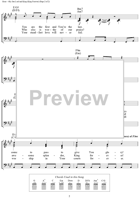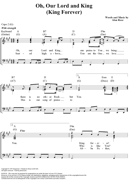 Digital Sheet Music for Oh, Our Lord and King (King Forever) by Alan Rose scored for Piano/Vocal/Chords; id:109591
