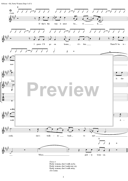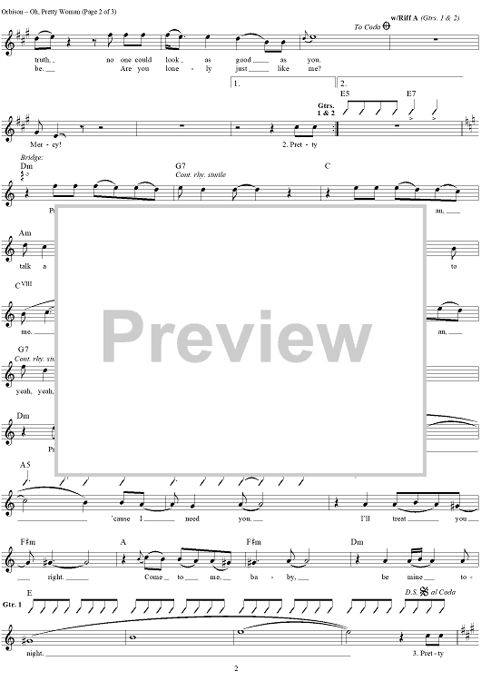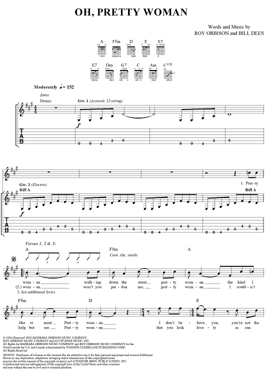 "Oh, Pretty Woman" Sheet Music by Roy Orbison