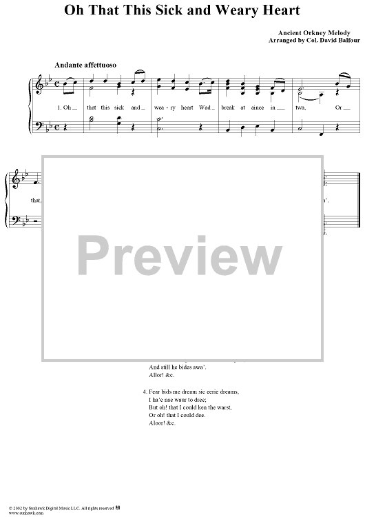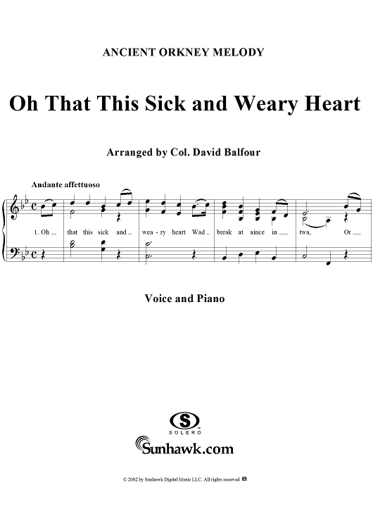 Digital Sheet Music for Oh That This Sick and Weary Heart by Col. David Balfour scored for Voice/Piano; id:276210