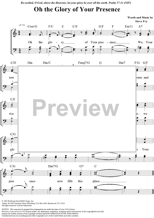 Digital Sheet Music for Oh the Glory of Your Presence by Steve Fry scored for Piano/Vocal/Chords; id:95354
