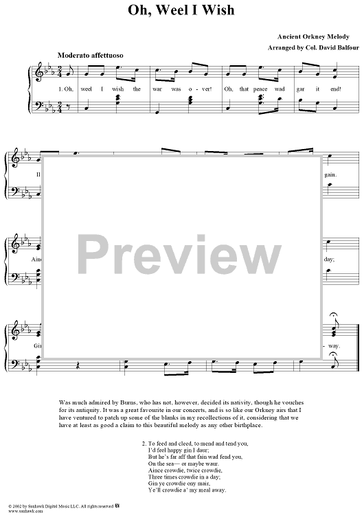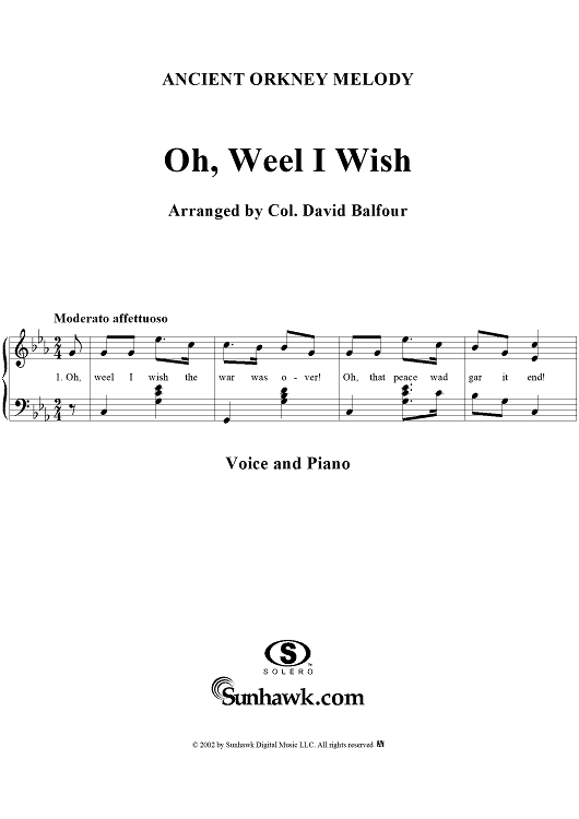 Digital Sheet Music for Oh, Weel I Wish by Col. David Balfour scored for Voice/Piano; id:276161