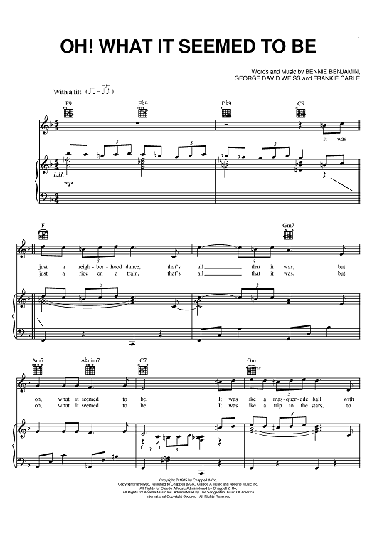 Digital Sheet Music for Oh! What It Seemed To Be by Frankie Carle, George David Weiss, Bennie Benjamin scored for Piano/Vocal/Chords; id:394647