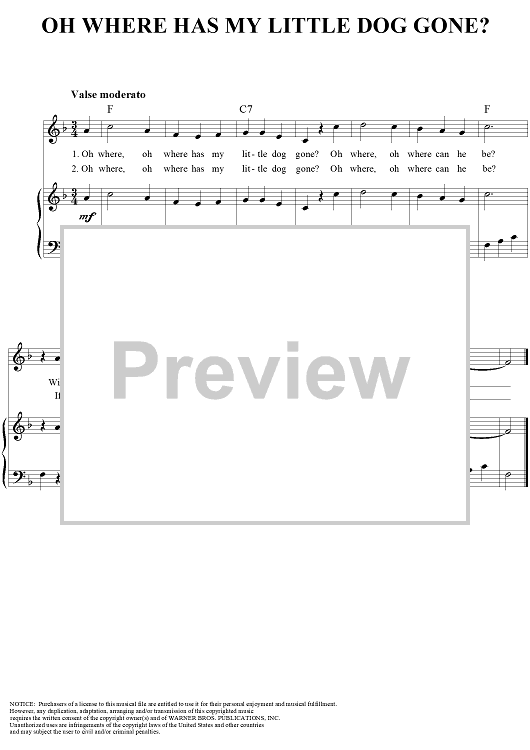 Digital Sheet Music for Oh Where Has My Little Dog Gone? by Traditional scored for Piano/Vocal/Chords; id:277102
