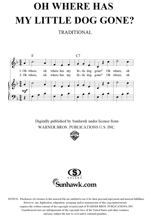 "Oh Where Has My Little Dog Gone?" Sheet Music by Traditional