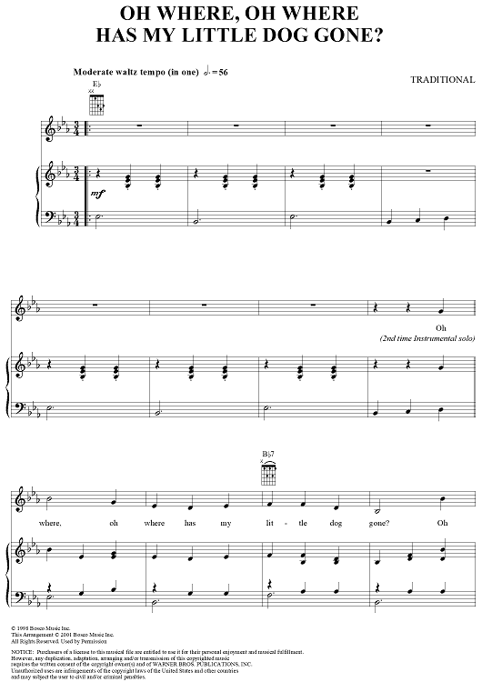 Digital Sheet Music for Oh Where, Oh Where Has My Little Dog Gone? by Traditional scored for Piano/Vocal/Chords; id:289111