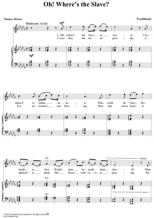 Digital Sheet Music for Oh where's the slave? by Thomas Moore, Traditional scored for Piano/Vocal; id:258851