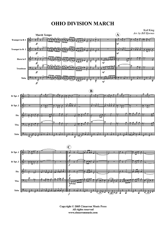 Digital Sheet Music for Ohio Division March - Score by Bill Bjornes, Karl King scored for Brass Quintet; id:320321