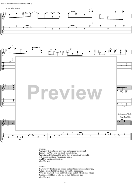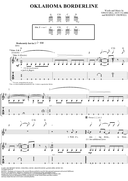 Digital Sheet Music for Oklahoma Borderline by Vince Gill scored for Guitar Tab/Vocal; id:119327